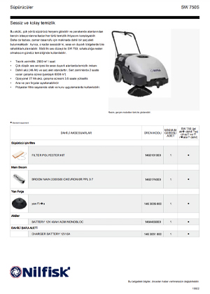 NILFISK SW 750S - İticili Süpürücüler ÜRÜN ÖZELLİKLERİ